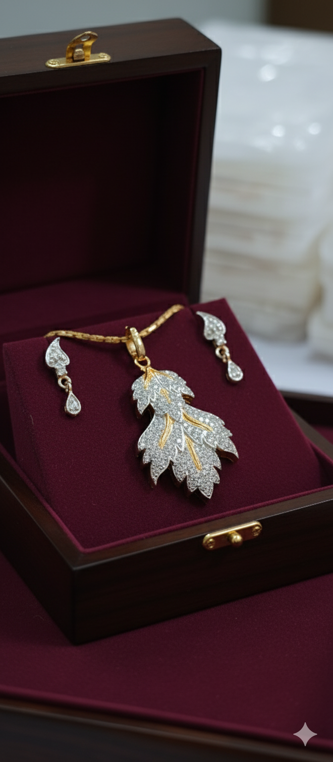 Artificial and attractive design leaf-insppired motif pendent set