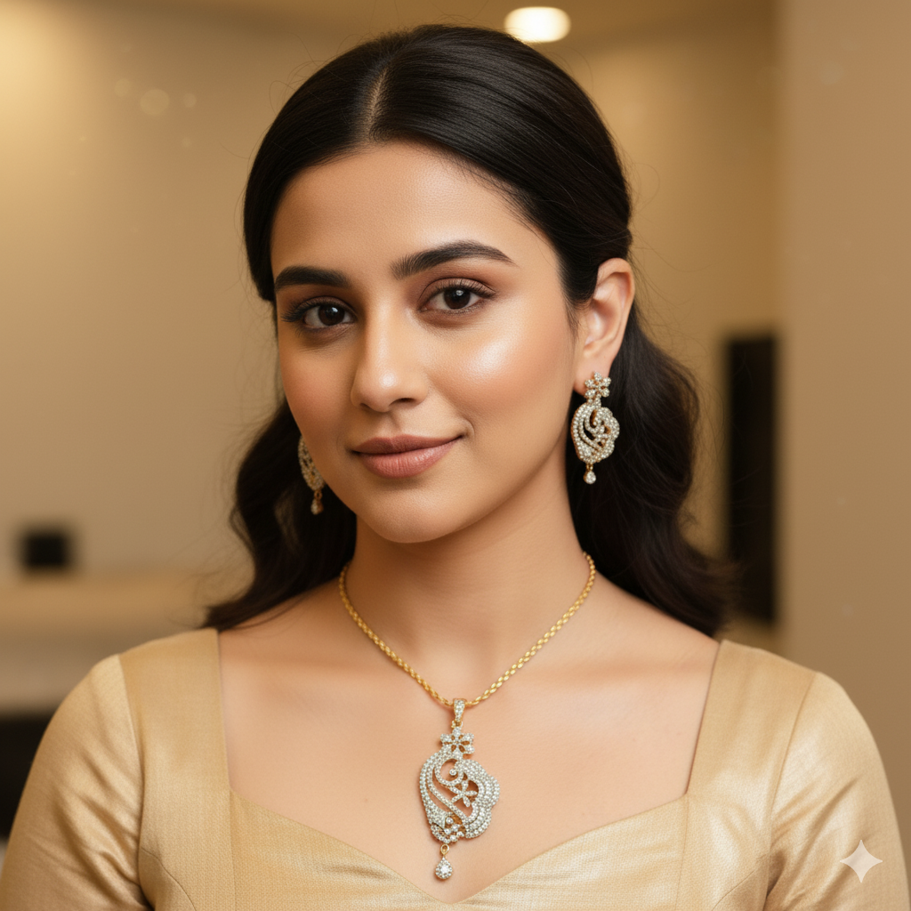 🌟 Artificial Shimmering White Stone Designer Pendant with Earrings 🌟