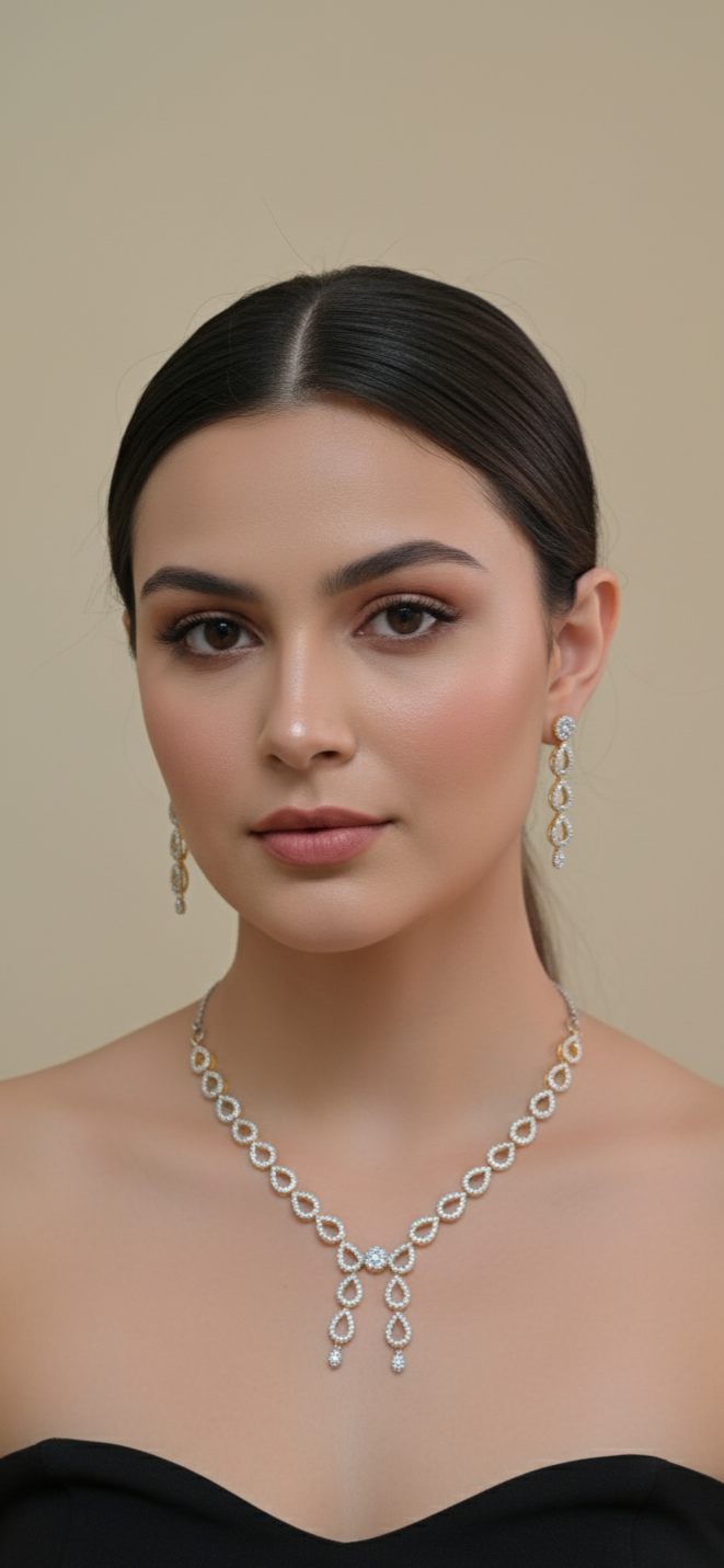 Be the first to review “Top Quality Artificial american diamond attractive neckless set”