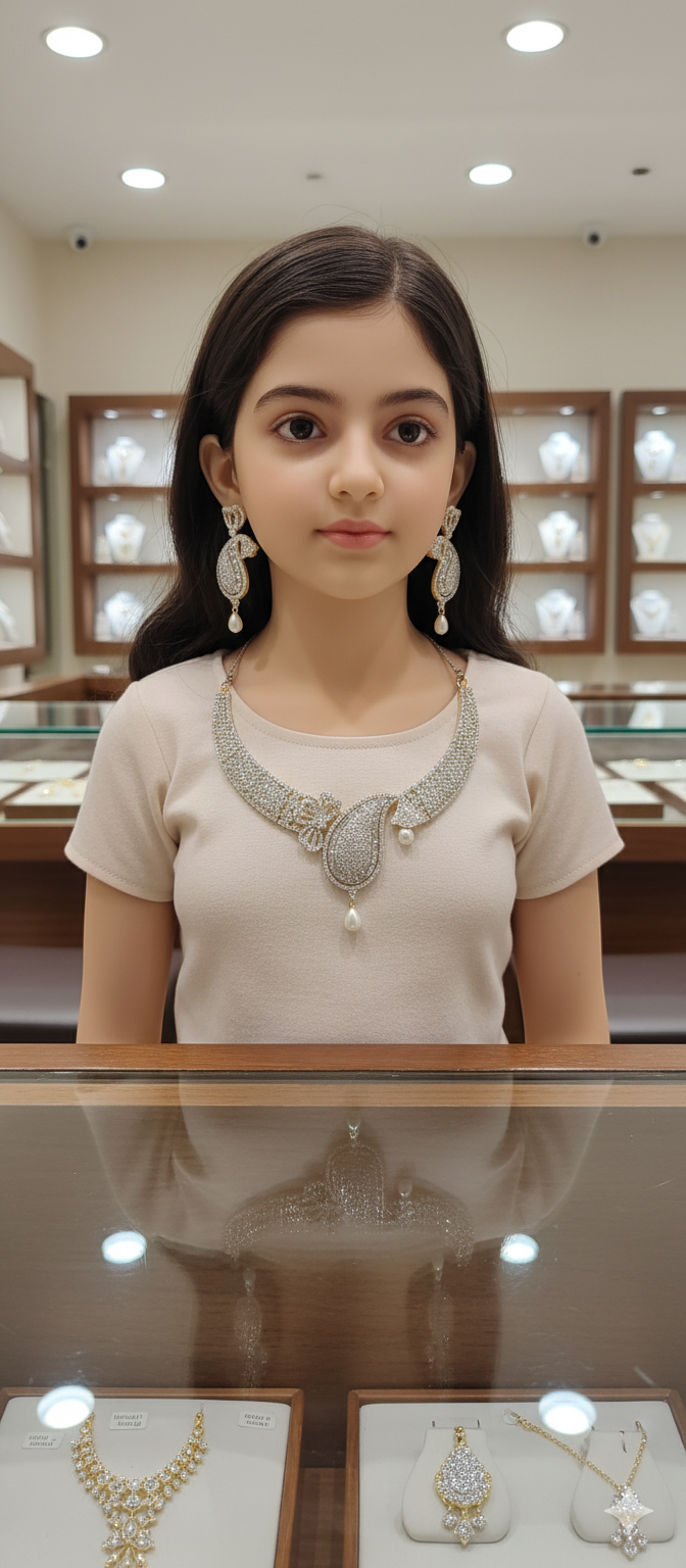 Design: Elegant paisley-inspired motif with intricate stonework and pearl drops