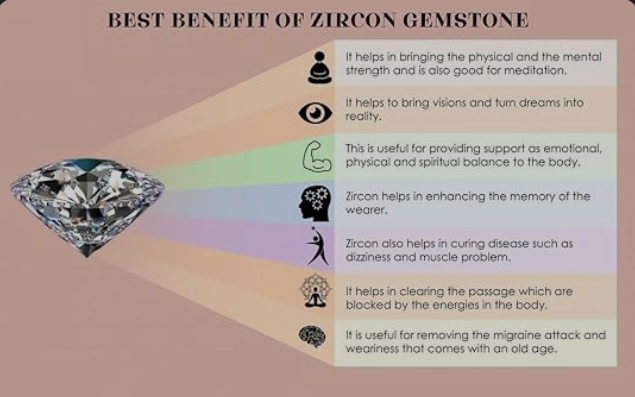 Zircon is believed to bring physical, emotional, and spiritual balance by calming the mind and body.