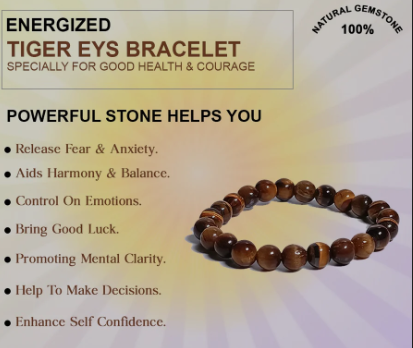 टाइगर आई ब्रेसलेट पहनने के लाभों में मानसिक शांति, बढ़े हुए आत्मविश्वास, एकाग्रता में सुधार, भावनात्मक संतुलन, नकारात्मक ऊर्जा से सुरक्षा, और शारीरिक ऊर्जा में वृद्धि शामिल हैं। यह छात्रों और काम करने वालों के लिए एकाग्रता बढ़ाता है, वित्तीय समस्याओं से निपटने में मदद करता है, और शारीरिक स्वास्थ्य को भी बेहतर बना सकता है।